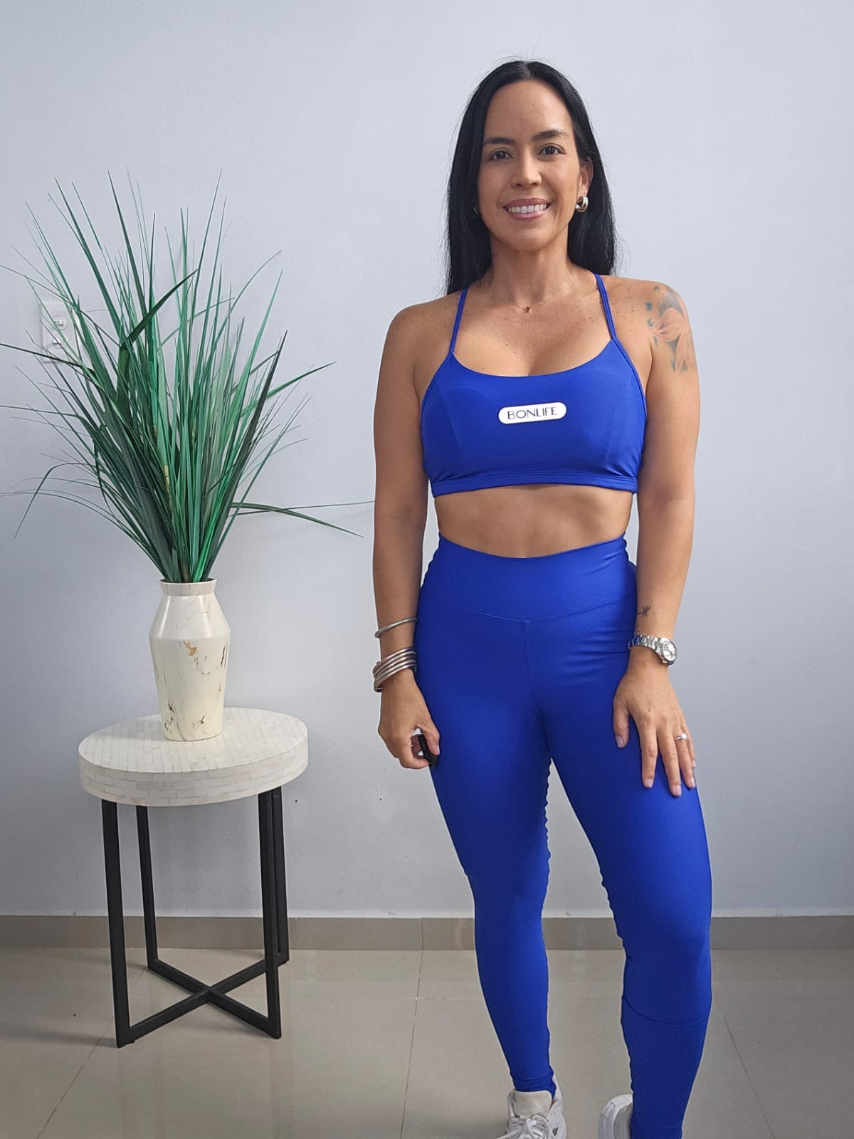 Este conjunto en azul vibrante está diseñado para destacar dentro y fuera del gym. El top con tirantes finos cruzados y detalle en la espalda combina estilo y soporte, mientras que el legging con fruncido realza tu figura con un ajuste perfecto. Ideal para tus rutinas de ejercicio, pero también perfecto para un look sporty chic durante el día. ¡Comodidad, actitud y energía en cada movimiento!